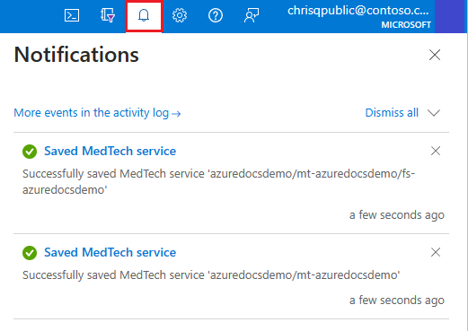 4. Once the device and FHIR destination mappings are successfully saved, a confirmation from Notifications is created within the Azure portal.