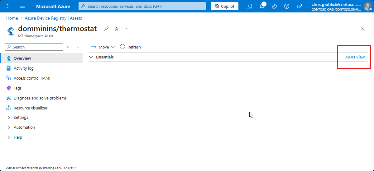The portal enables you to view the asset details. Select JSON View for more details: