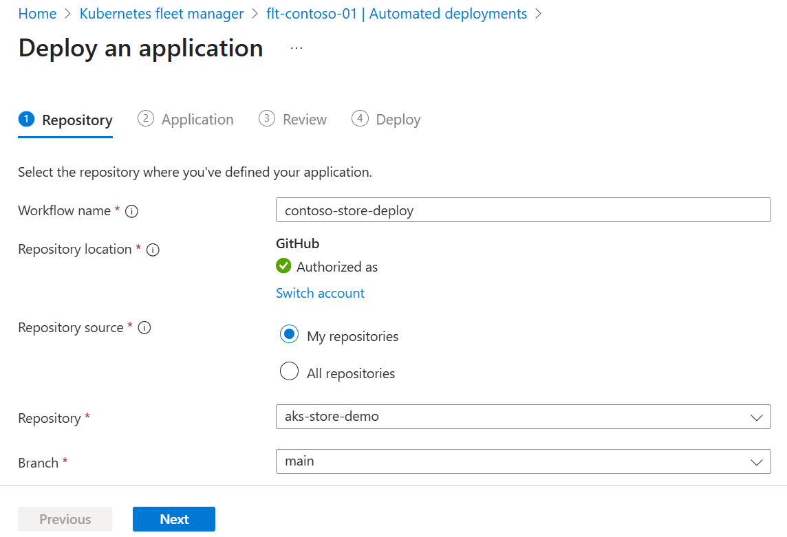 Azure Kubernetes Fleet Manager Automated Deployments can be used to build and deploy an application from a code repository to one or more AKS cluster in a fleet. Automated deployments simplify the process of setting up a GitHub Action workflow to build and deploy your code. Once connected, every new commit you make runs the pipeline.