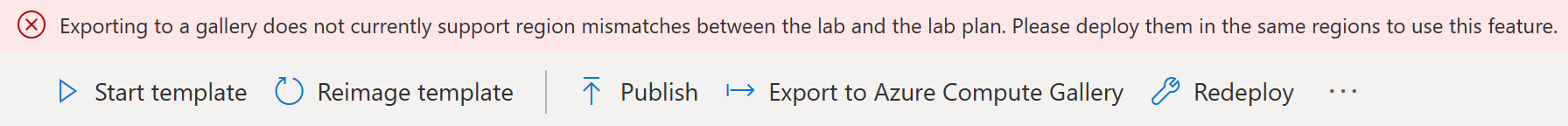 On the Template page for the lab, select Export to Azure Compute Gallery on the toolbar.