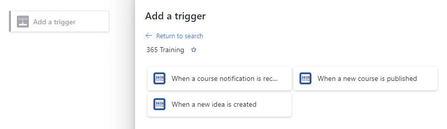 After you select a collection or connector, triggers appear based on the collection or connector name.