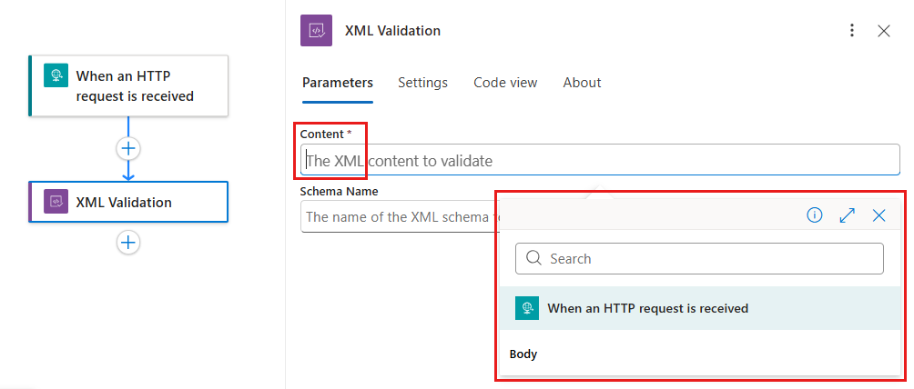 Workflow Action name Consumption XML Validation Standard Validate XML To view the source options for your XML content, follow these steps: