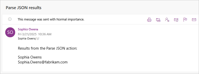 { "Member": { "Email": "Sophia.Owen@fabrikam.com", "FirstName": "Sophia", "LastName": "Owen" } }Follow these general steps to find the Data Operations action named Parse JSON.