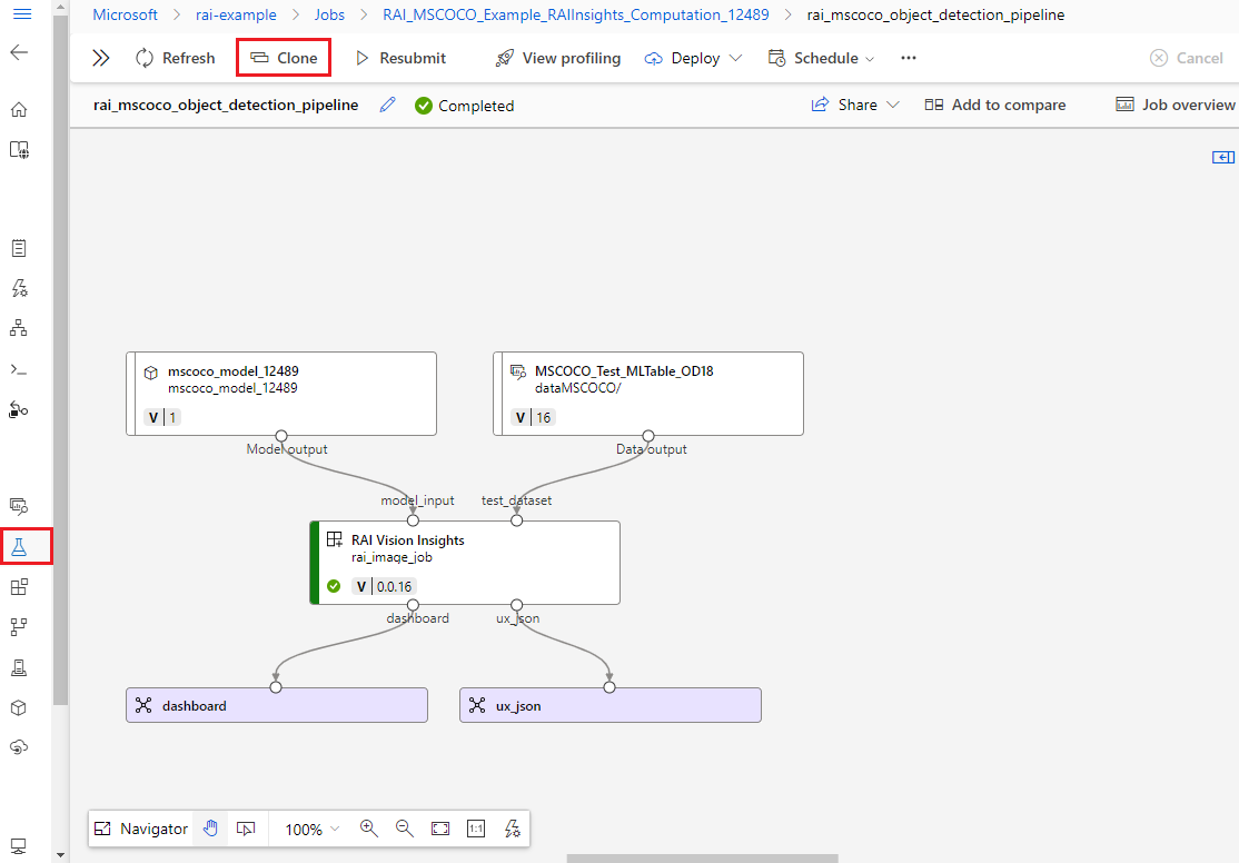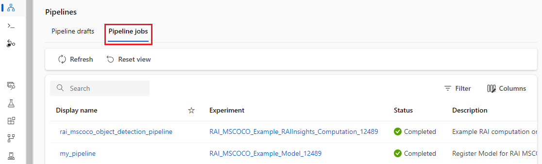 Each time you run a pipeline, the pipeline configuration and results are stored in your workspace as a pipeline job. You can resubmit any past pipeline job, inspect it for troubleshooting or auditing, or clone it to create a new pipeline draft for editing.