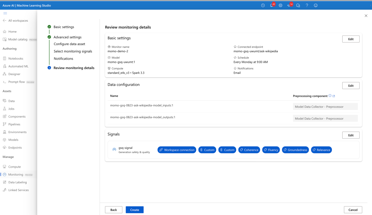Model monitoring for generative AI applications is currently in public preview. These previews are provided without a service-level agreement, and are not recommended for production workloads. Certain features might not be supported or might have constrained capabilities. For more information, see Supplemental Terms of Use for Microsoft Azure Previews.