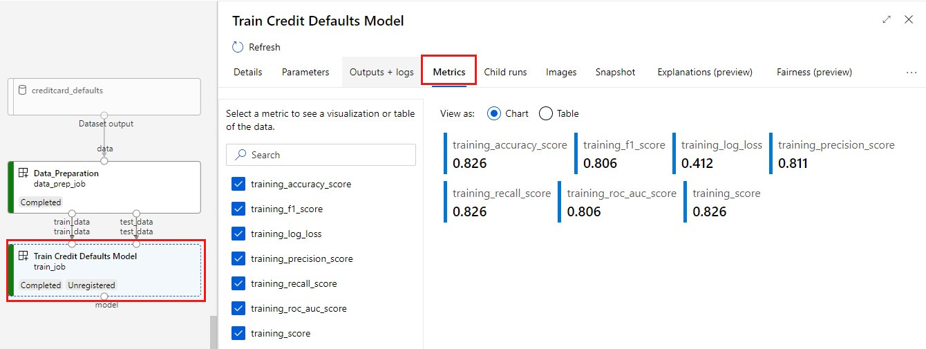 You can track the progress of your pipeline, by using the link generated in the previous cell. When you first select this link, you might see that the pipeline is still running. Once it's complete, you can examine each component's results.