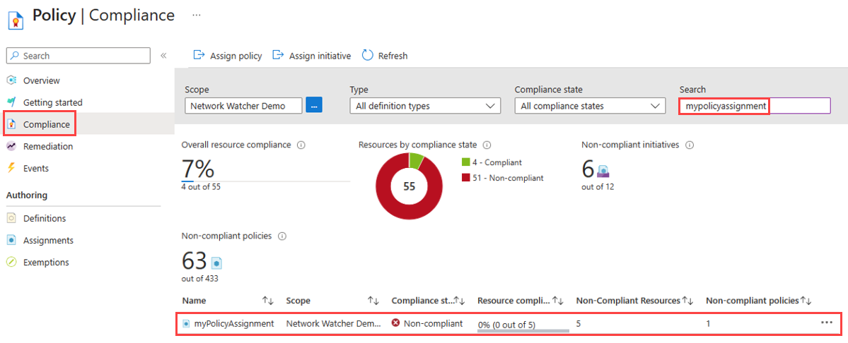 Select Resource compliance to get a list of all non-compliant flow logs.