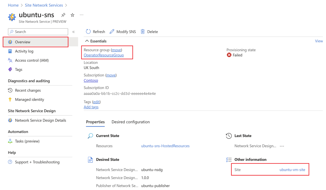 - Check the error message: If the error message mentions "nested resources," delete the Site Network Service (SNS) again.