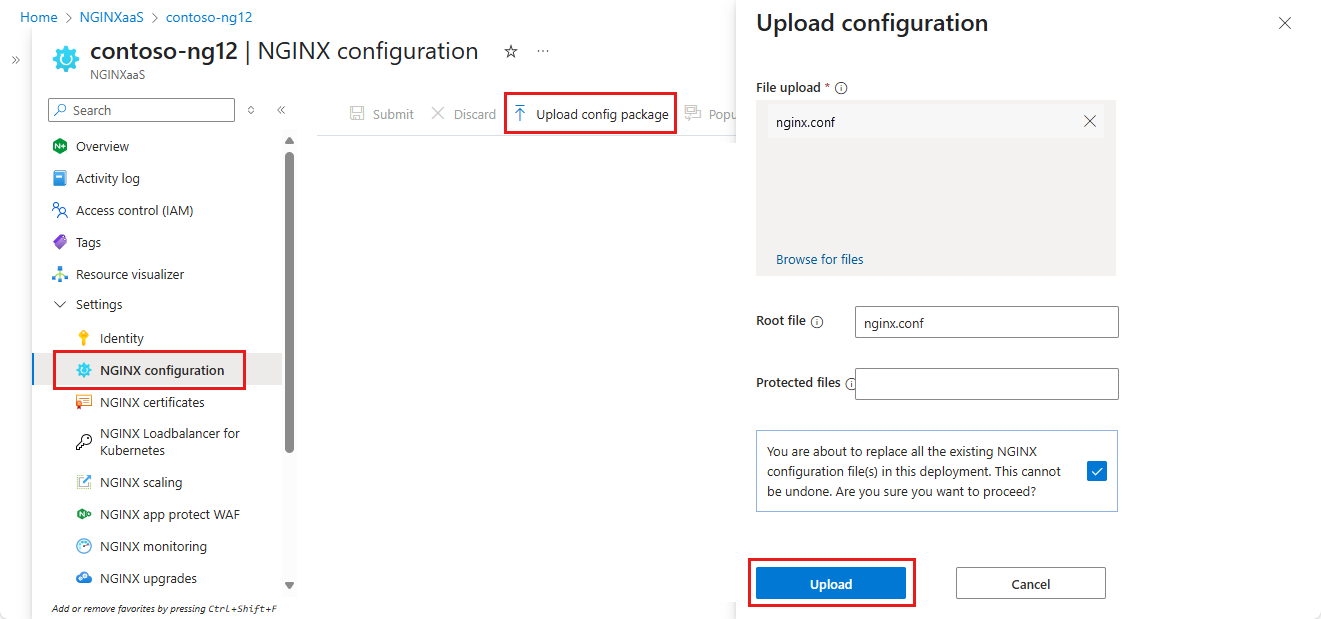 In your NGINXaaS deployment, in the left menu, select Settings > NGINXaaS configuration.