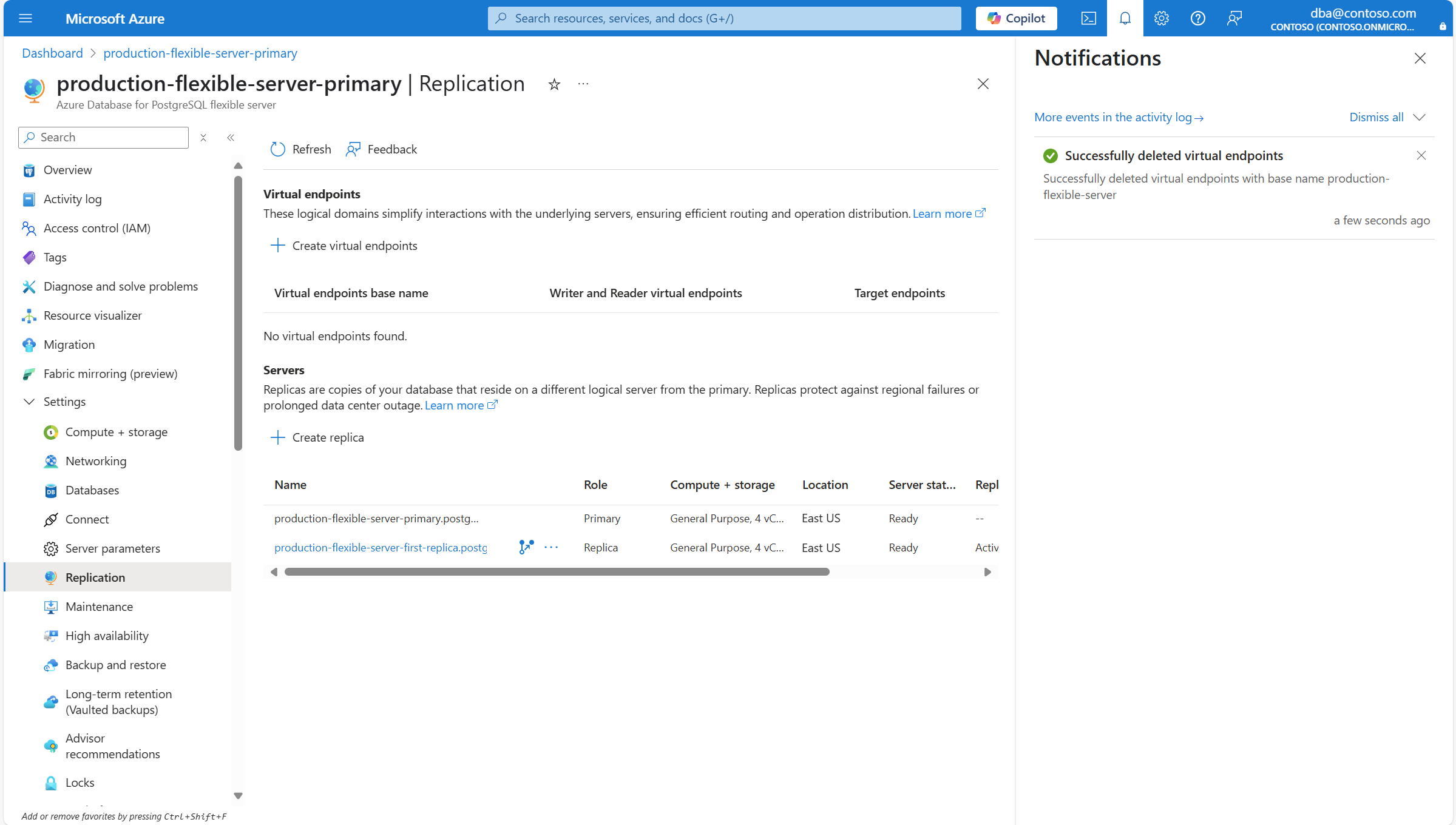 Select the Azure Database for PostgreSQL flexible server instance for which you want to delete its associated virtual endpoints.