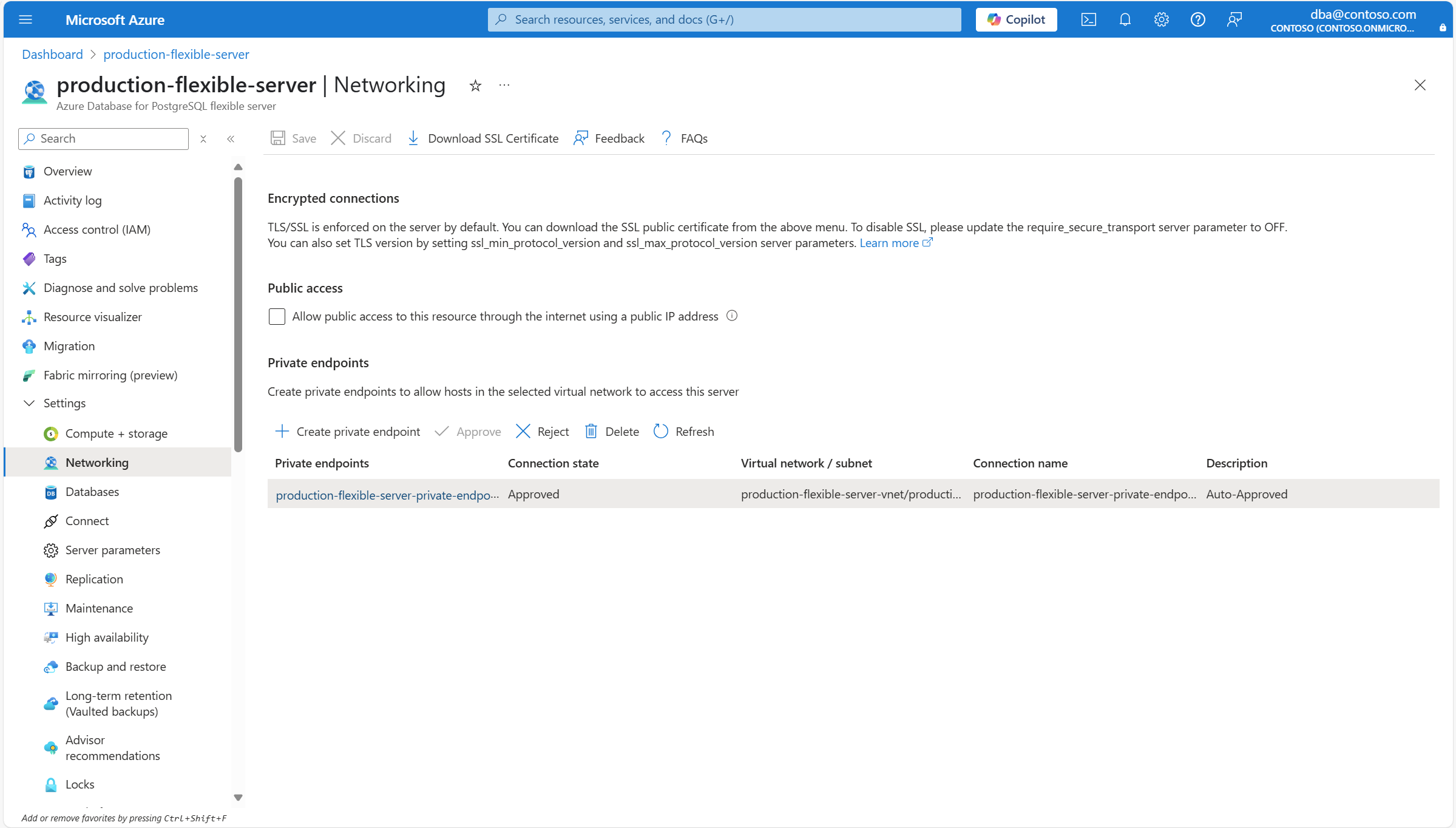 The previous procedure doesn't delete the private endpoint, but only the connection established between that private endpoint and your instance of Azure Database for PostgreSQL flexible server. To learn how to delete the private endpoint, see Manage Azure private endpoints.