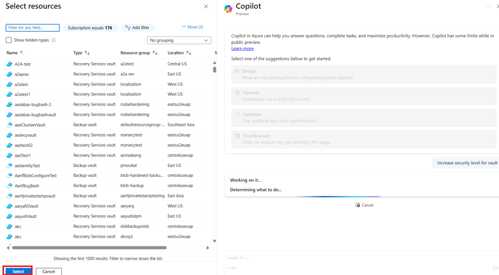 In the Azure portal, go to the specific vault, and then select Copilot.