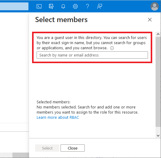 External users have restricted directory permissions. Even if an external user is an Owner at a scope, if they try to assign a role to grant someone else access, they can't browse the list of users, groups, or service principals.