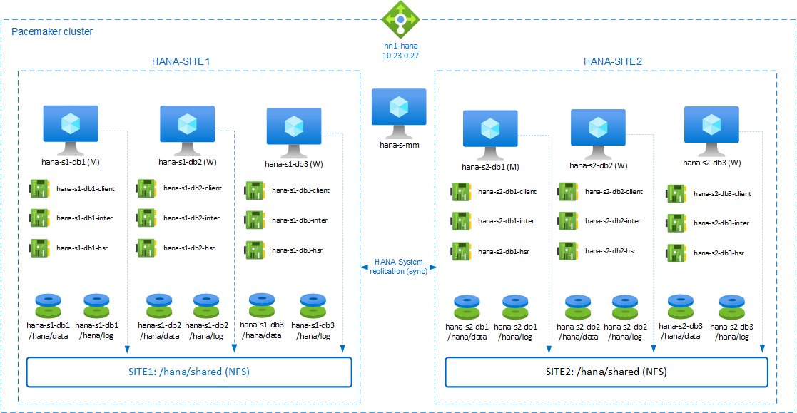 This article describes how to deploy a highly available SAP HANA system in a scale-out configuration with HANA system replication (HSR) and Pacemaker on Azure SUSE Linux Enterprise Server virtual machines (VMs). The shared file systems in the presented architecture are NFS mounted and are provided by Azure NetApp Files or NFS share on Azure Files.