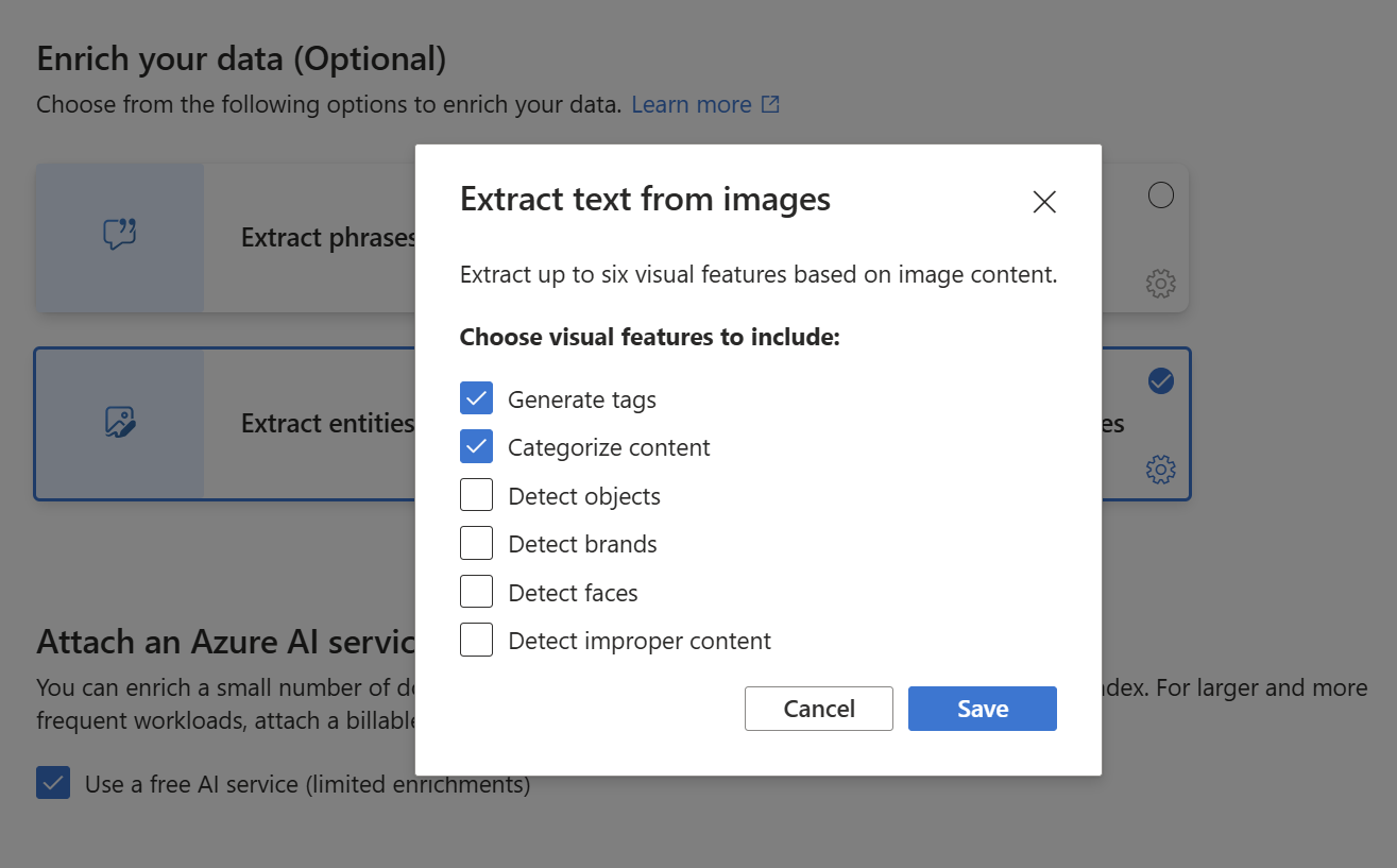 Leave the Use a free AI service (limited enrichments) checkbox selected.