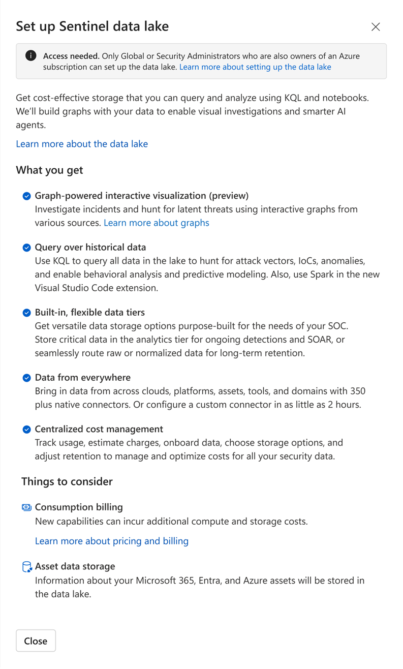 - Ensure that you have the required role to onboard to the Microsoft Sentinel data lake.