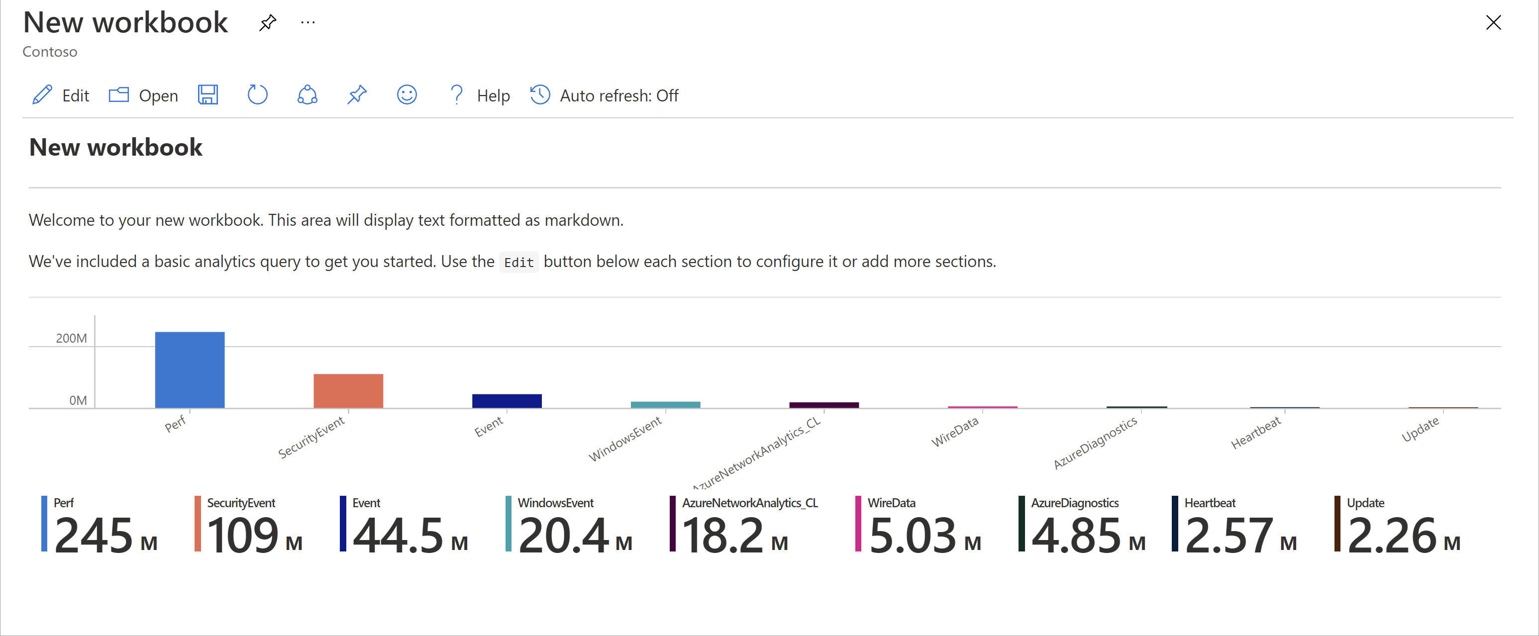 To edit the workbook, select Edit, and then add text, queries, and parameters as necessary.