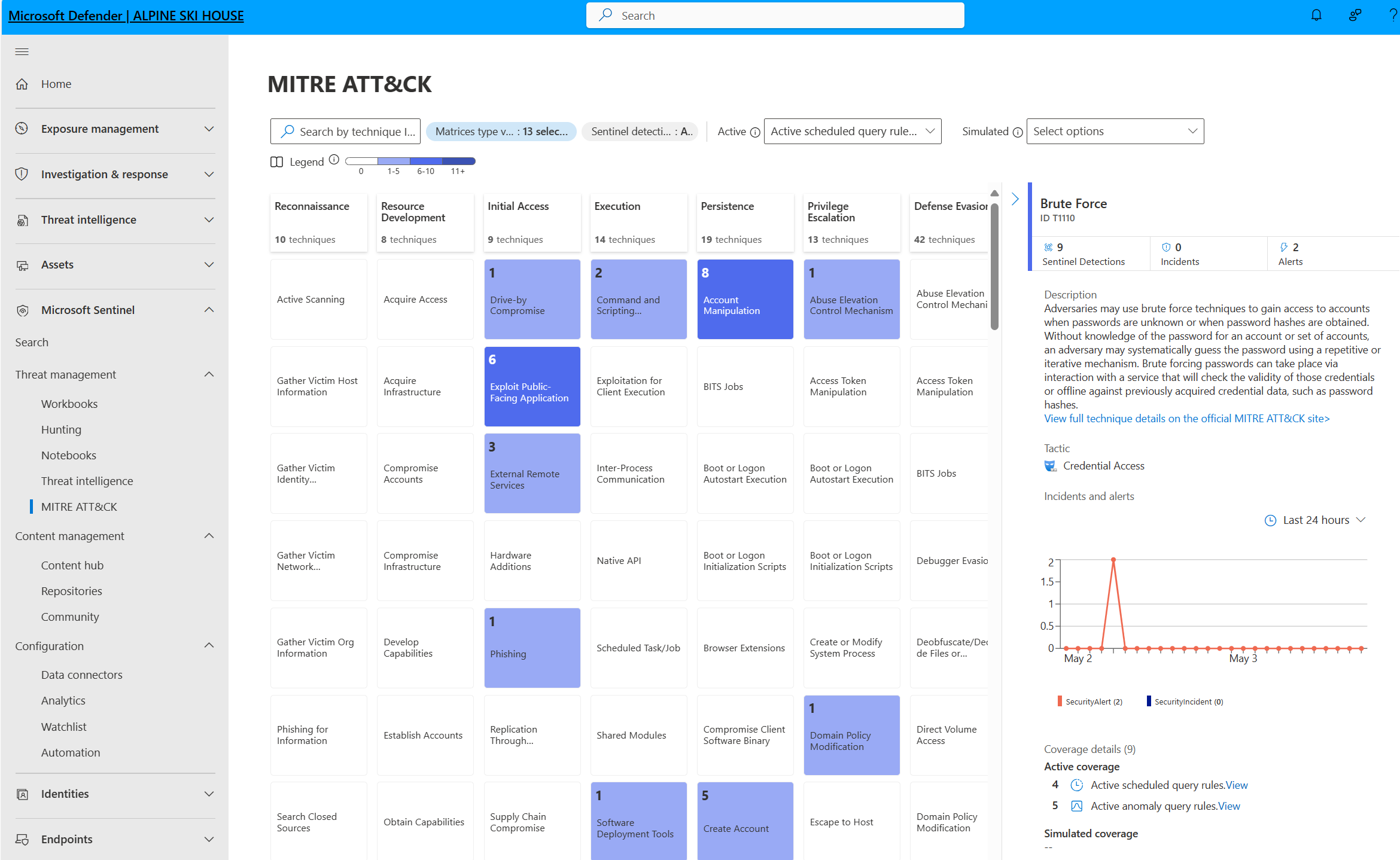 | MITRE ATT&CK coverage | Microsoft Sentinel analyzes ingested data, not only to detect threats and help you investigate, but also to visualize the nature and coverage of your organization's security status based on the tactics and techniques from the MITRE ATT&CK® framework. | Understand security coverage by the MITRE ATT&CK® framework |