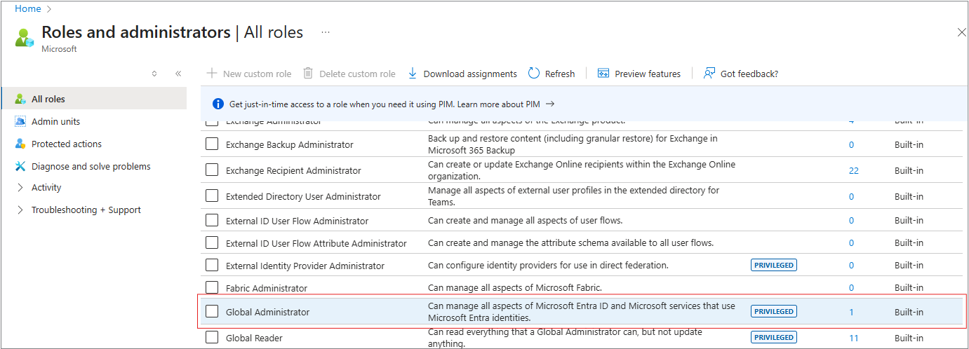 Select Roles and administrators from the side panel.