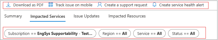 - Impacted resources could be shown as a static list or might be unavailable, based on the information provided to Service Health for that event.