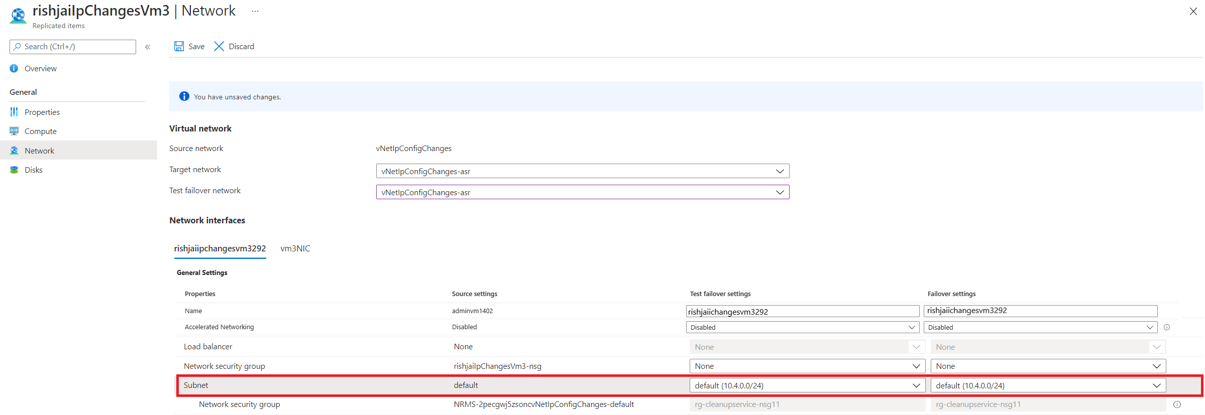 If a subnet with the same name as the source virtual machine subnet is available in the target network, that subnet is set for the target virtual machine.