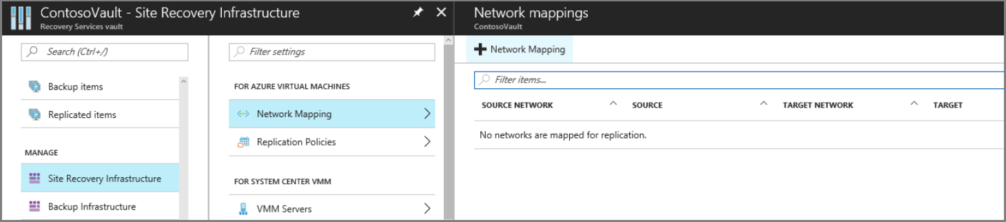 Before you map networks, you should have Azure VNets in the source and target Azure regions.