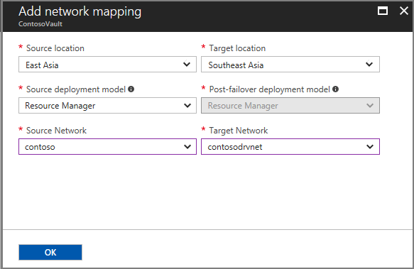 This article describes how to map two instances of Azure virtual networks (VNets) located in different Azure regions, and how to set up IP addressing between networks. Network mapping provides a default behavior for target network selection based on source network at the time of enabling replication.