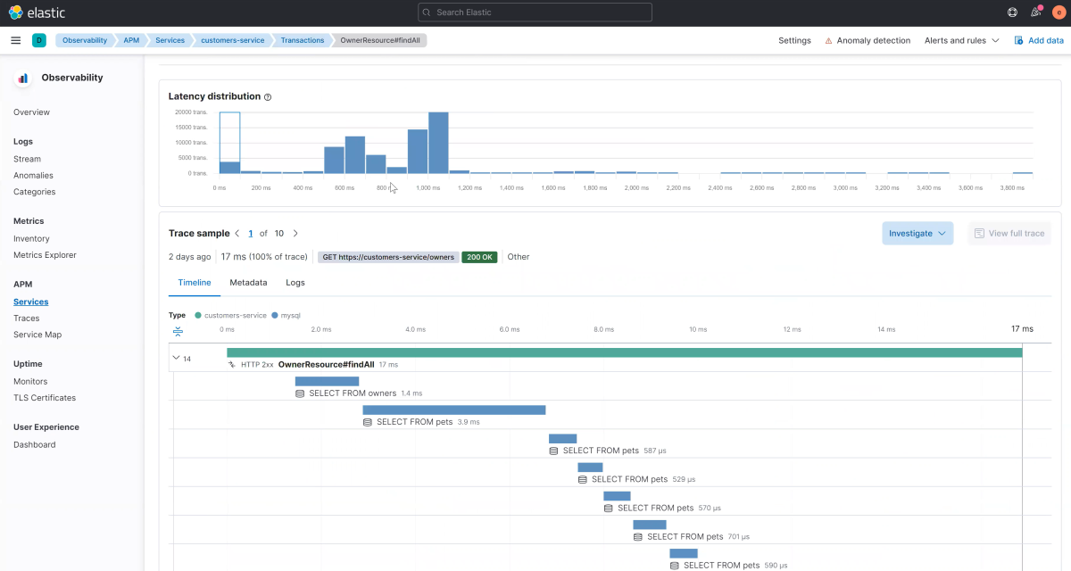 With the Elastic Observability Solution, you can achieve unified observability to: