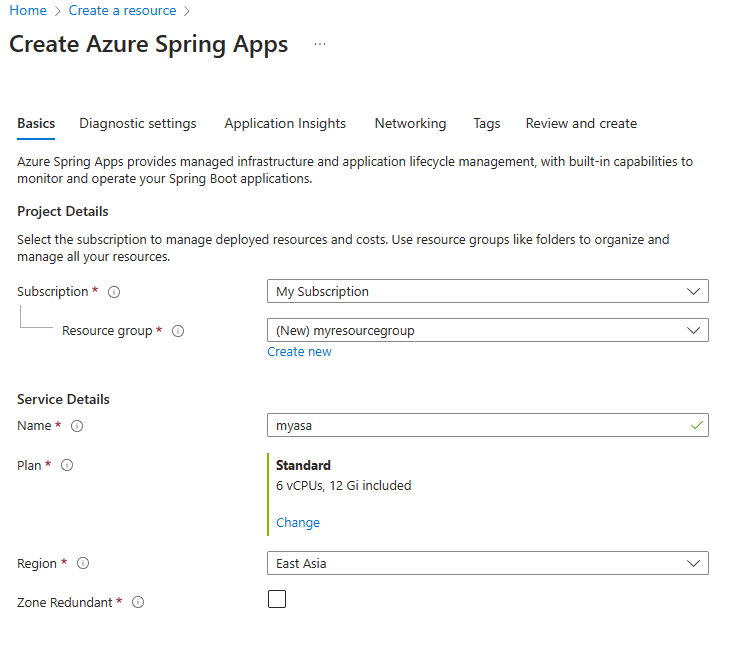The option to create your Azure Spring Apps service in an Azure availability zone. This feature isn't currently supported in all regions. |