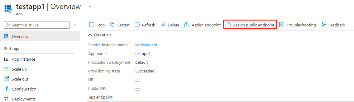 Select Assign Public Endpoint to assign a public FQDN to your application. Assigning an FQDN can take a few minutes.