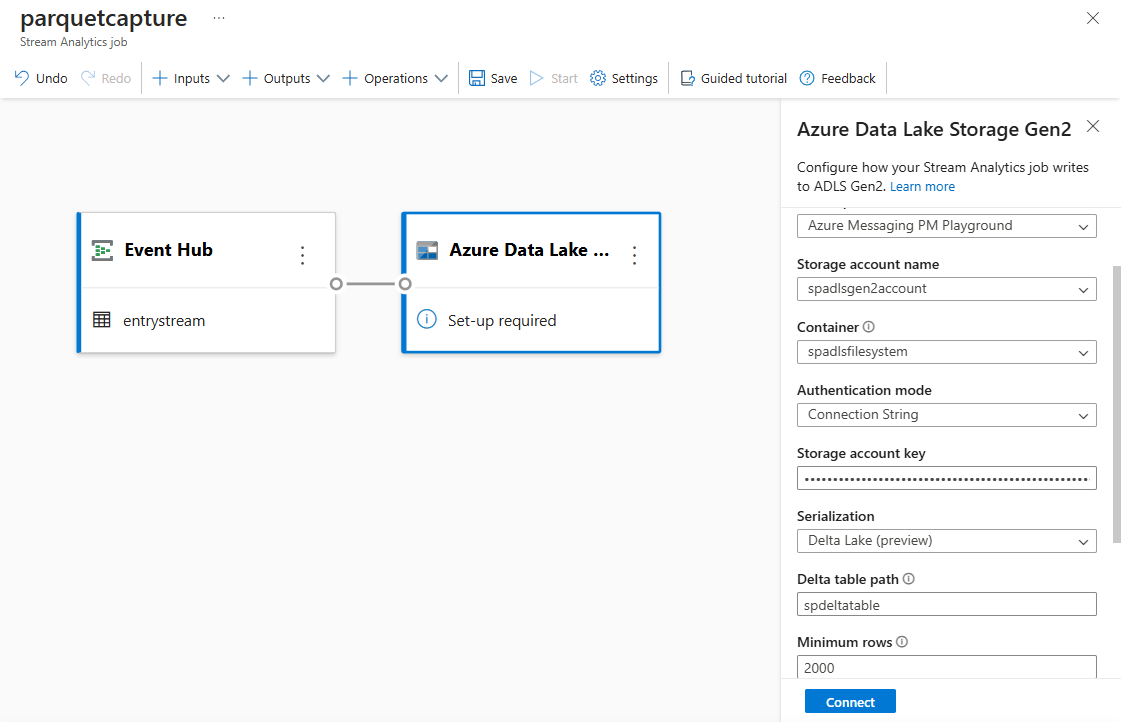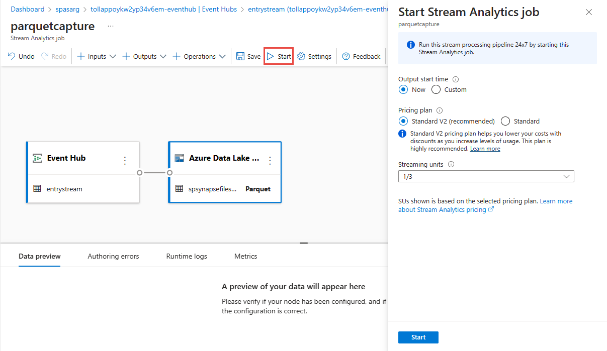 Select Start on the Capture data to ADLS Gen2 in Parquet format tile.