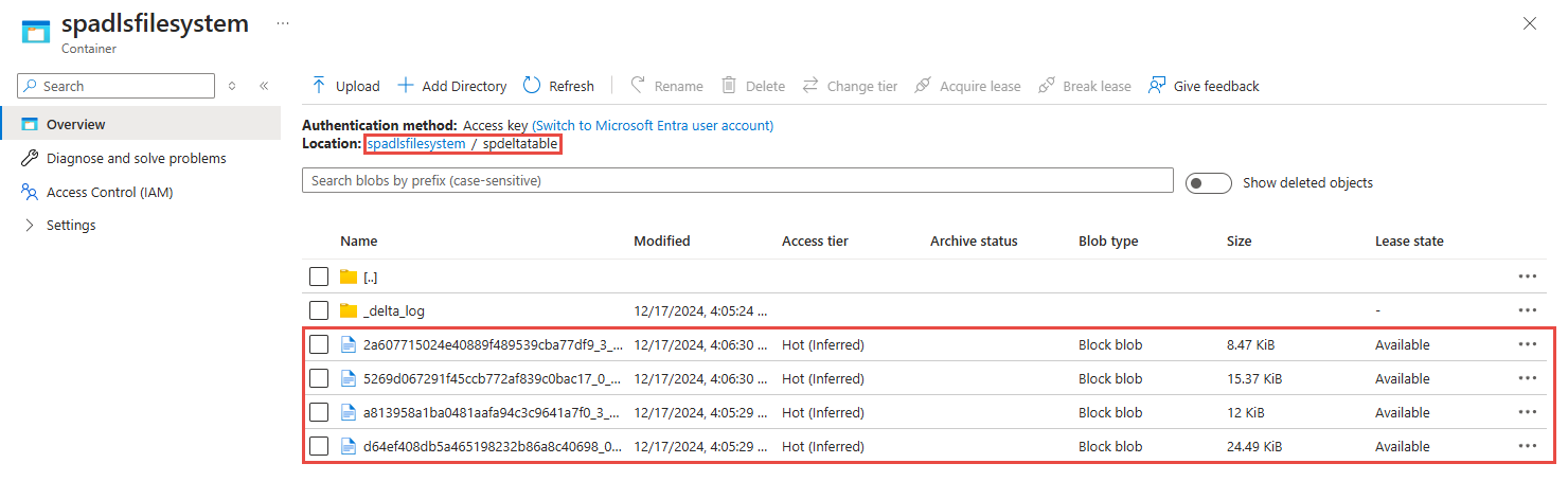 Select the container you had used in the previous step. You'll see parquet files created in the folder you specified earlier.