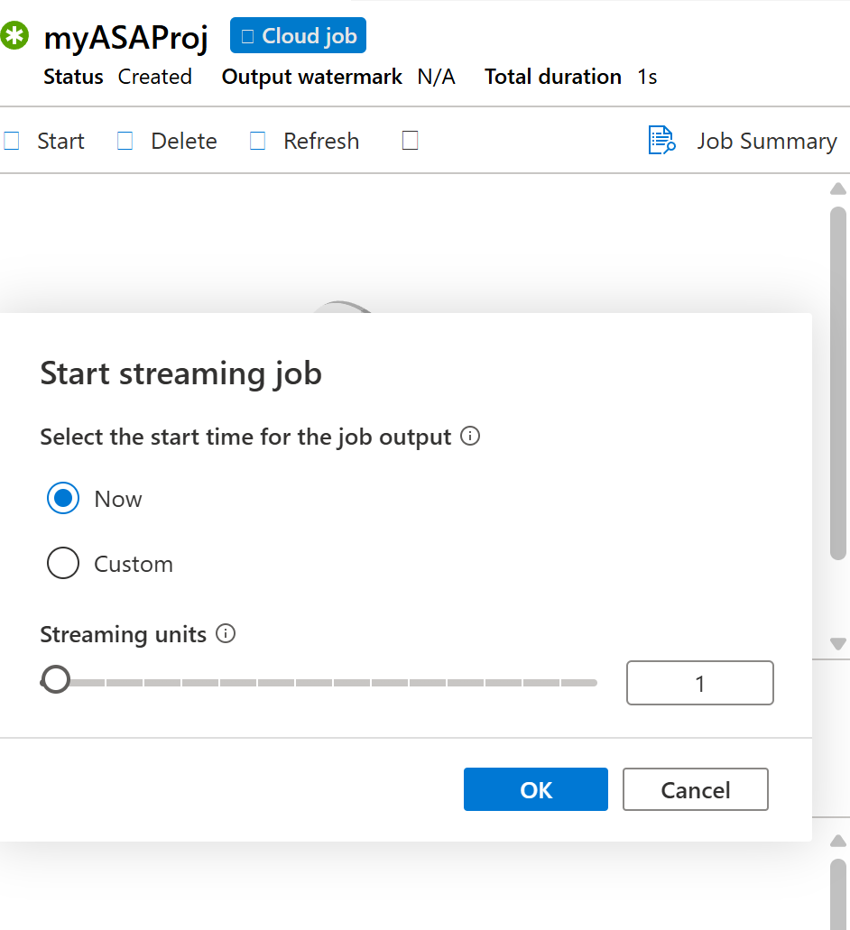 On the Start streaming job window, select OK. This process might take a few minutes to complete.
