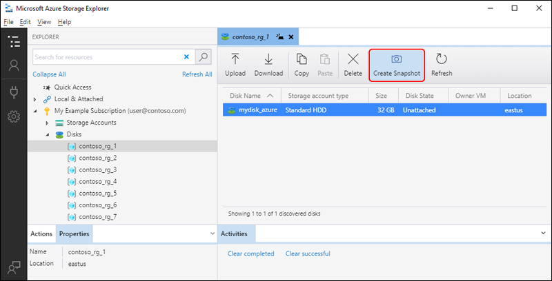 In the Explorer pane, expand Disks and select the resource group that contains the disk you want to snapshot.