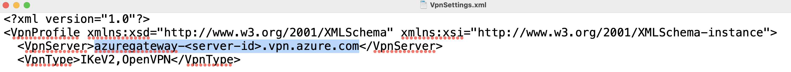 - VpnServerRoot.cer, which contains the root certificate required to validate the Azure VPN gateway during P2S connection setup.