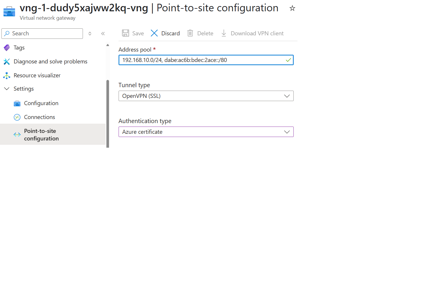 - Currently IPv6 for VPN in Virtual WAN isn't supported.