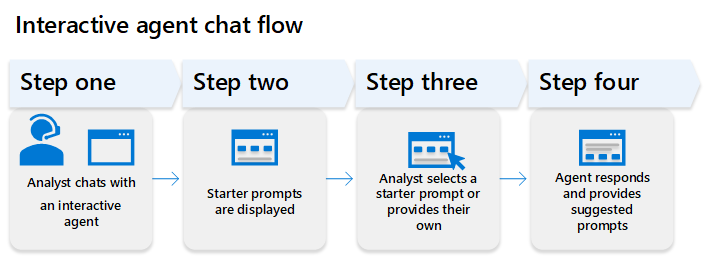 Interactive agent experience in Microsoft Security Copilot is a platform capability that enables dynamic, multi-turn conversations between users and agents. It transforms static interactions into context-aware, iterative suggestions through prompts where agents can clarify, adapt, and collaborate proactively. Interactive agents scope chat experiences to the goals or jobs that truly matter to you and your users.