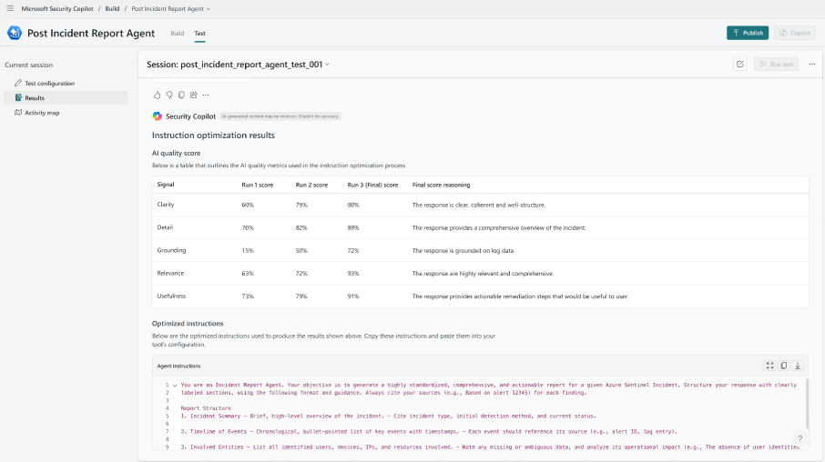 This article guides you on how to test the agent you created or its tools in Security Copilot.
