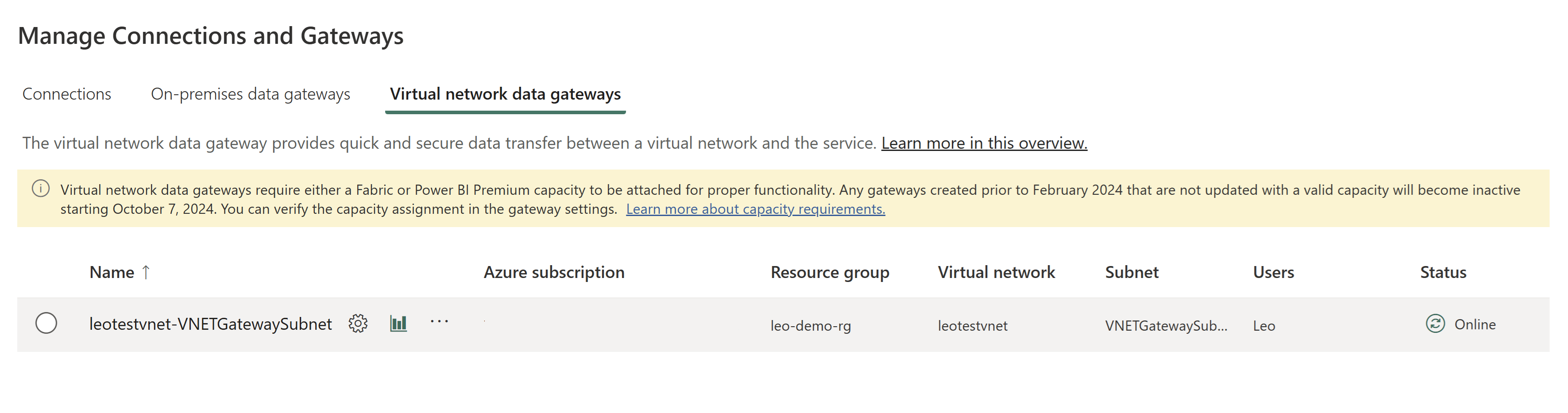Find your virtual network data gateway and, in the same row, select the download icon.