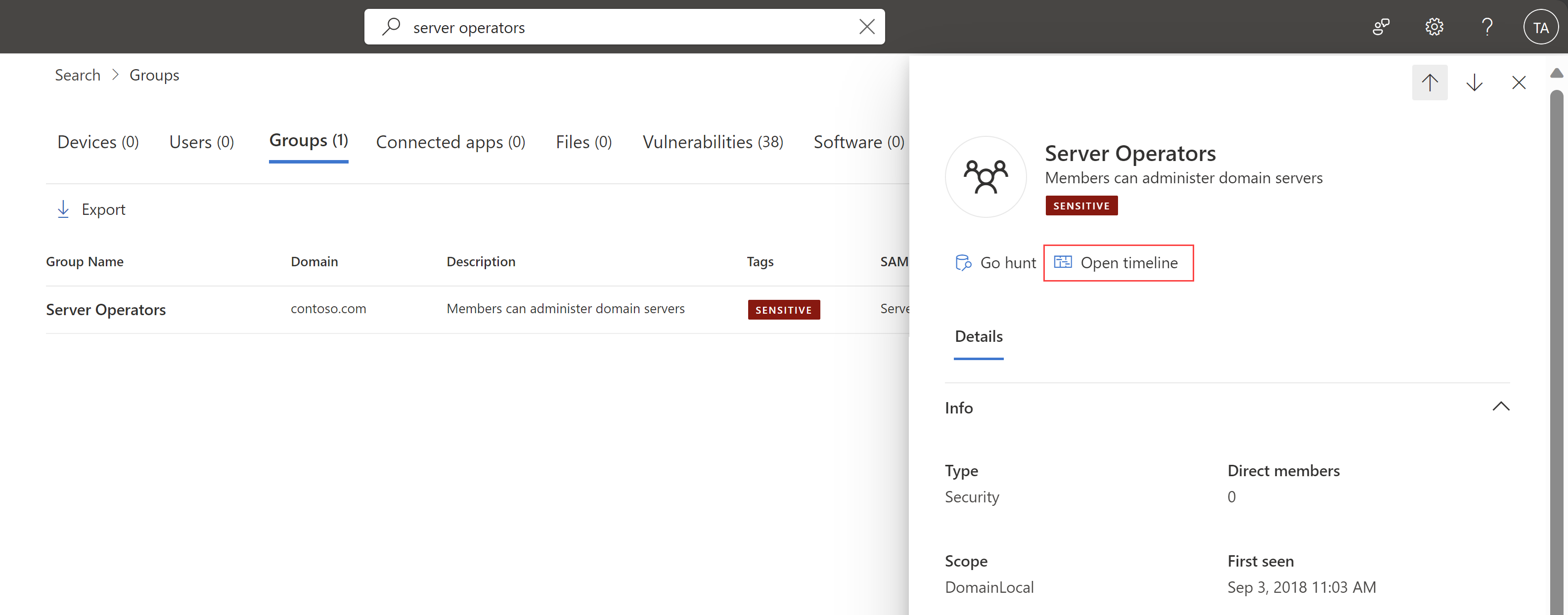 Defender for Identity added the Go hunt button for groups in Microsoft Defender XDR. Users can use the Go hunt button to query for group-related activities and alerts during an investigation.
