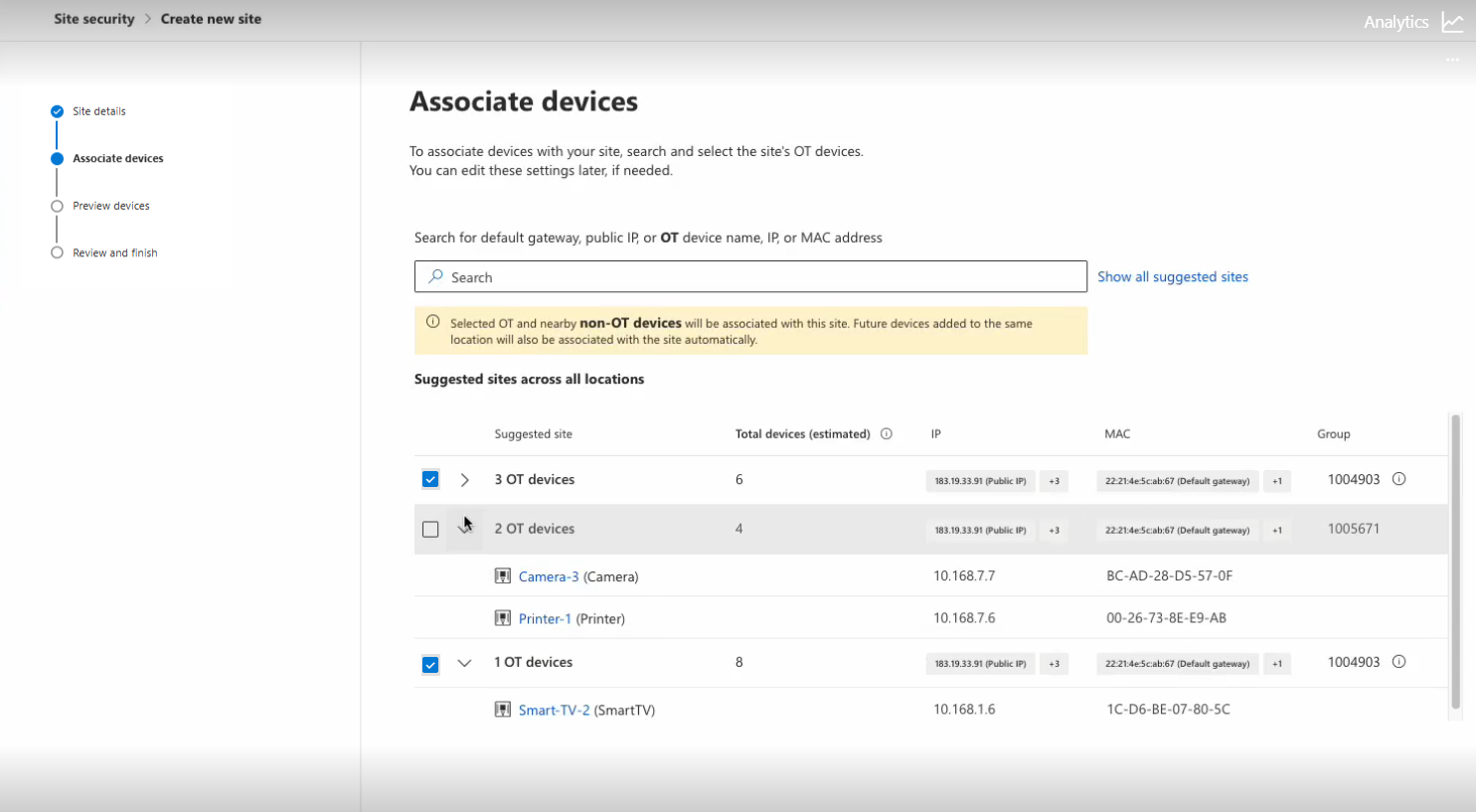 In this stage, you configure Defender for IoT to associate devices to the site, so it can correctly identify and associate all types of devices at the same site.