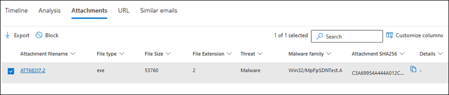 - File detonation: Safe Attachments detected a malicious attachment during detonation analysis.