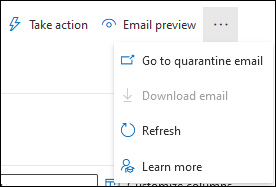 Go to quarantined email: Available only if the message was quarantined. Selecting this action opens the Email tab on the Quarantine page at https://security.microsoft.com/quarantine, filtered by the unique Message ID value of the message. For more information, see View quarantined email.
