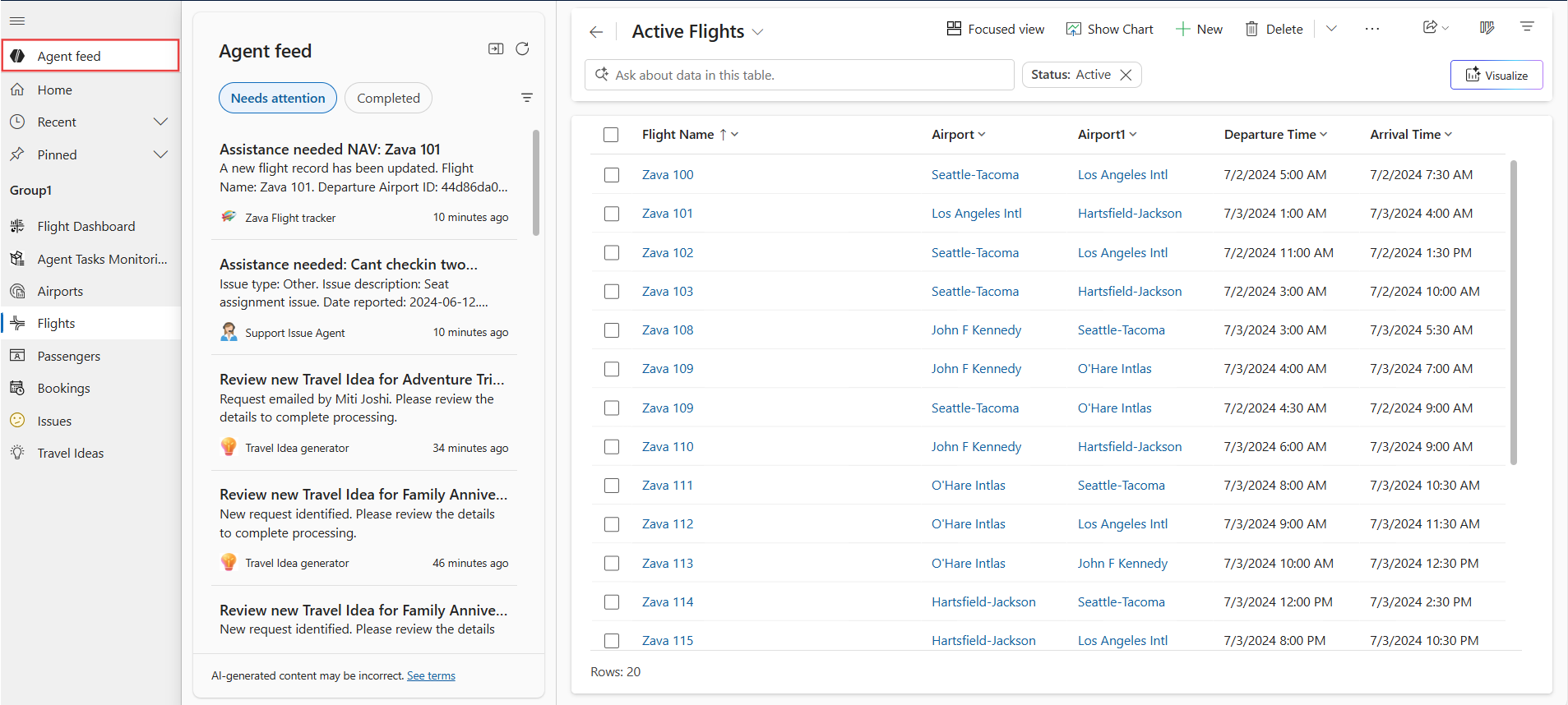 Starting May 01, 2026, agent feed will support those agents only that use the Power Apps MCP server to create tasks. Make sure that your agents are properly onboarded to the Power Apps MCP server by this date to continue using the agent feed. If your agents don't use the Power Apps MCP server, the agent feed won't appear in your model-driven app.