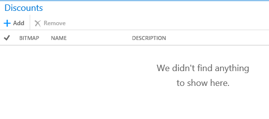 Select the Frequent Customer discount, and then select OK. The selected discount is added to the Discounts grid.
