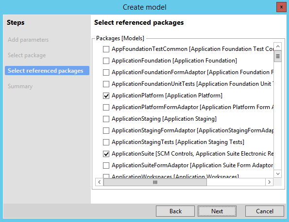 3. On the next page, select the ApplicationSuite model to reference. (The ApplicationPlatform model is preselected.)