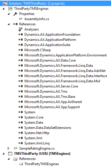 7. In the ThirdPartyTMSEngines project, add references to Supply Chain Management–specific assemblies: