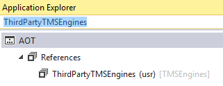 5. In a new solution, create a new Supply Chain Management project, and name it TMSThirdParty. In the project properties, set the project's model to TMSEngines.