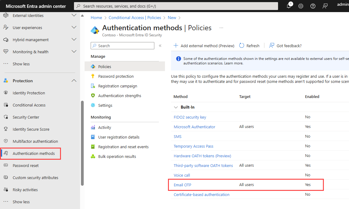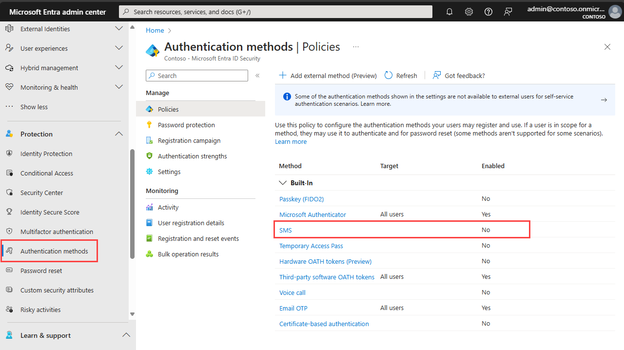 Browse to Entra ID > Authentication methods.