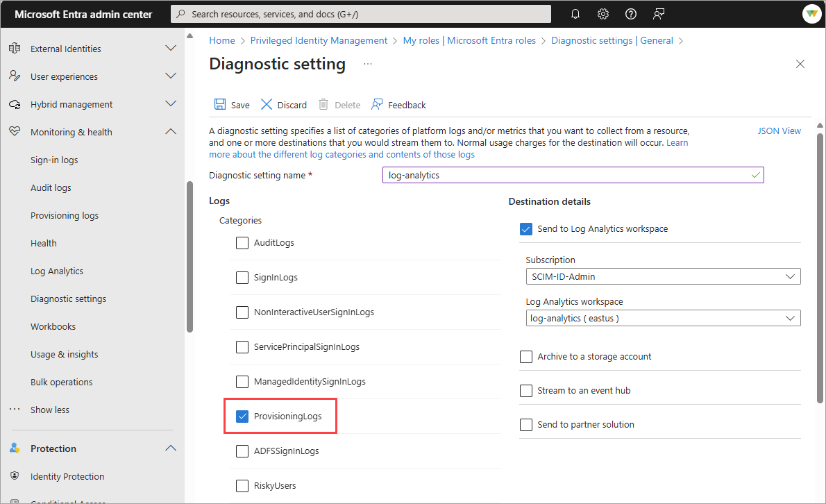Browse to Entra ID > Monitoring & health > Diagnostic settings.